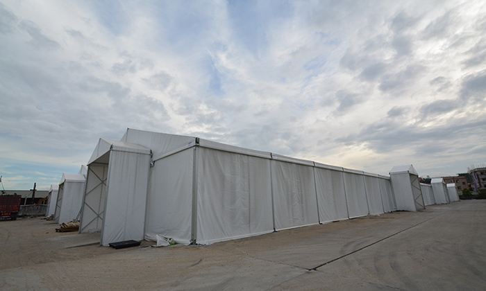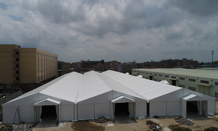 倉儲篷房主體也叫歐式篷房。歐式篷房不同于我們大眾理解的傳統(tǒng)意義上的帳篷。所謂篷房,顧名思義篷房在規(guī)模上可以媲美固定建筑。篷房的面積可以小到幾平米,大到幾萬平米,理論上甚至可以無限延展。篷房內(nèi)部沒有支柱,空間100%利用。