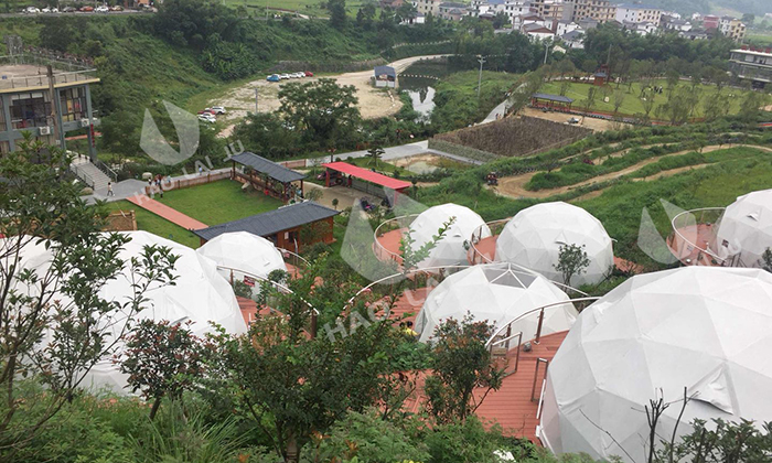 球形星空酒店帳篷一直受到游客的喜愛(ài),這一次武功山的營(yíng)地也是搭建球形星空酒店帳篷。在這里綠油油的風(fēng)景中,最合適搭建酒店帳篷。遠(yuǎn)遠(yuǎn)看去12頂白色球形星空帳篷在綠景也能成為一道亮麗的風(fēng)景。