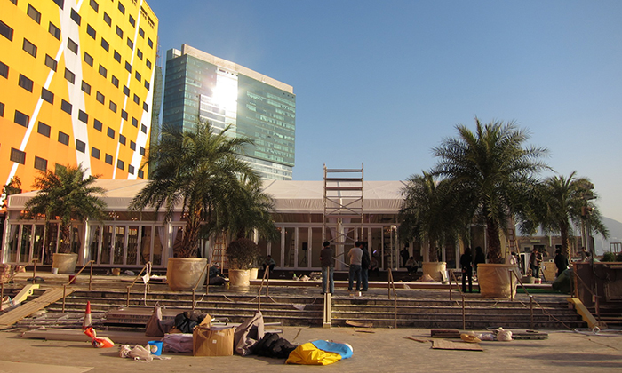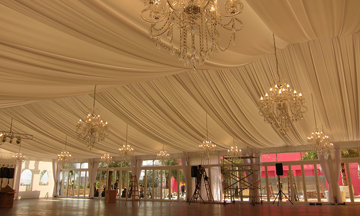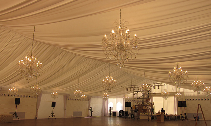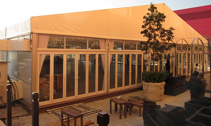 我司嚴(yán)格執(zhí)行ISO9001的質(zhì)量管理體系,確保不良產(chǎn)品的最小化及客戶滿意度的最大化。我們的的主要產(chǎn)品包括可移動(dòng)的模塊化鋁合金支架篷房,有不同風(fēng)格的篷房及裝飾可供選擇,篷房跨度從3米到60米。此外,還包括錐頂篷房和吊頂篷房,以及篷房配件,如照明燈具、地板、空調(diào)、桌椅及其它用于篷房?jī)?nèi)部的家具。篷房可廣泛應(yīng)用于大小型活動(dòng)、婚慶、展會(huì)、體育、酒店、航空和工業(yè)等其它領(lǐng)域。篷房框架結(jié)構(gòu)為高強(qiáng)度鋁合金6061/T6型材,篷布為防水、阻燃的雙面PVC涂層聚酯纖維布,主體結(jié)構(gòu)風(fēng)載荷不少于100Km/h。