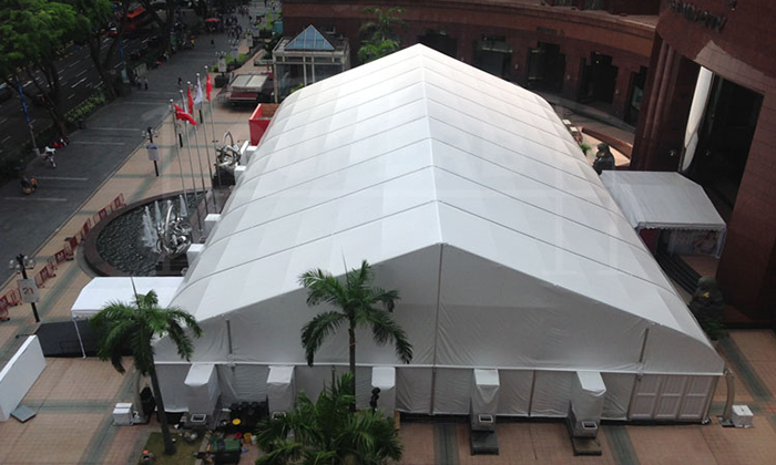 我司嚴(yán)格執(zhí)行ISO9001的質(zhì)量管理體系,確保不良產(chǎn)品的最小化及客戶(hù)滿(mǎn)意度的最大化。我們的的主要產(chǎn)品包括可移動(dòng)的模塊化鋁合金支架篷房,有不同風(fēng)格的篷房及裝飾可供選擇,篷房跨度從3米到60米。此外,還包括錐頂篷房和吊頂篷房,以及篷房配件,如照明燈具、地板、空調(diào)、桌椅及其它用于篷房?jī)?nèi)部的家具。篷房可廣泛應(yīng)用于大小型活動(dòng)、婚慶、展會(huì)、體育、酒店、航空和工業(yè)等其它領(lǐng)域。篷房框架結(jié)構(gòu)為高強(qiáng)度鋁合金6061/T6型材,篷布為防水、阻燃的雙面PVC涂層聚酯纖維布,主體結(jié)構(gòu)風(fēng)載荷不少于100Km/h。