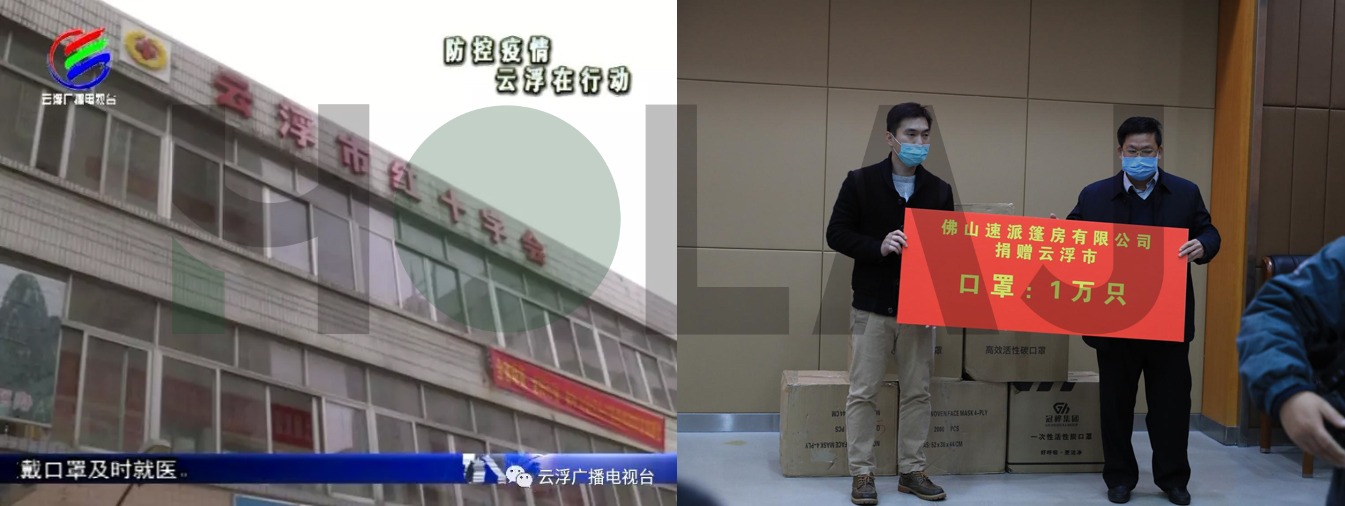 第二批捐助:2020年2月2日“速派篷房”第二批損助給廣東云浮醫(yī)療部門“防護(hù)口罩”一萬個(由思勞管委會統(tǒng)一安排)