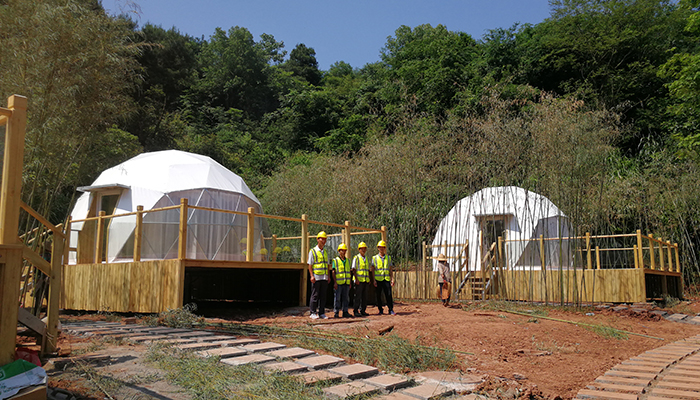 湖南生態(tài)球形篷,美麗大自然與奢華舒適的酒店完美結(jié)合,創(chuàng)造出令人心曠神怡的意境。原生態(tài)帳篷外形設(shè)計(jì)古樸,與周?chē)h(huán)境和諧共處,為居住者帶來(lái)獨(dú)特而難忘的度假體驗(yàn)。