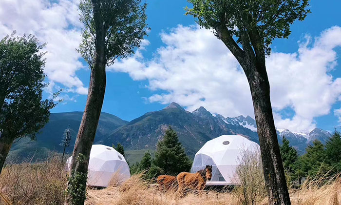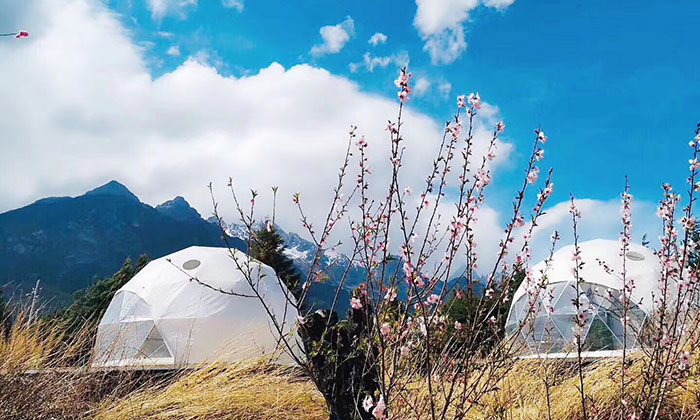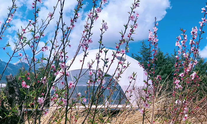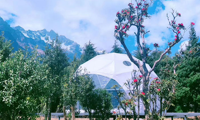 4、搭建周期短:獨特的網殼結構使球形帳篷搭建相當簡單便捷,一個10米直徑的球形帳篷(78平方米)只需5個人花幾小時就可以搭建完成,甚至可實現遷移再造,具備靈活可移動性!