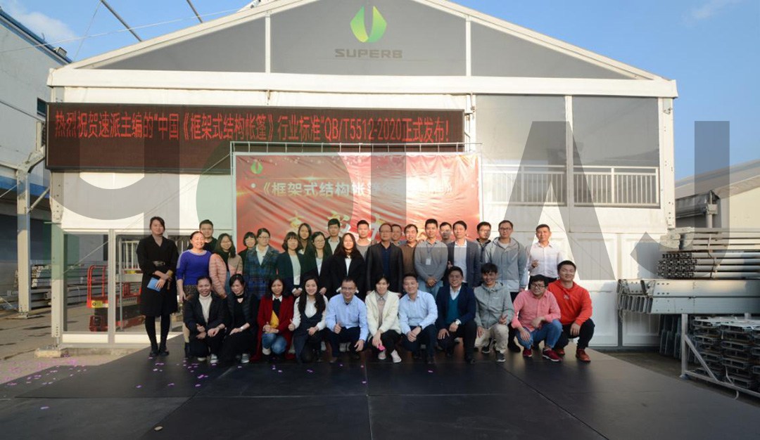 速派憑借在篷房領(lǐng)域卓越的研發(fā)創(chuàng)新實(shí)力,組織公司專家參加框架式結(jié)構(gòu)篷房的標(biāo)準(zhǔn)編寫工作,并最終完成《框架式結(jié)構(gòu)帳篷標(biāo)準(zhǔn)》的編寫、審批。