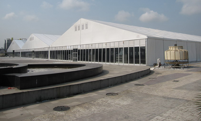 大型展館篷房,可以根據(jù)客戶需求將不同寬度的篷房跨度,從而達到理想的預設(shè)空間。