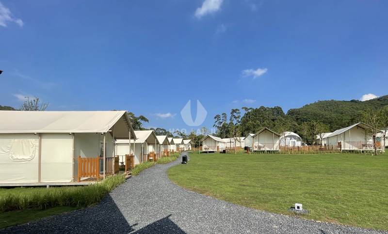 花都里·化屋度假營地位于烏江源百里畫廊化屋景區(qū),營地有野奢帳篷22個,輕奢帳篷19個。